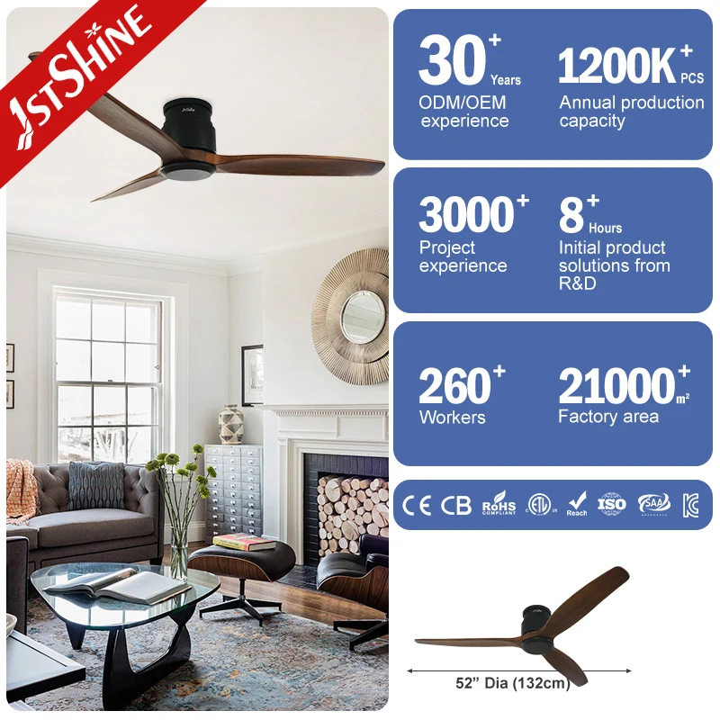 1stshine Ceiling Fan Contemporary Low Noise DC Motor Mute Operation Flush Mount Ceiling Fan Without Light